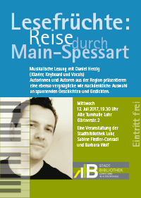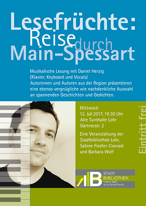 Lesung in der Alten Turnhalle, Lohr am Main, 12. Juli 2017Ein charmantes Treffen von Literatur und Musik