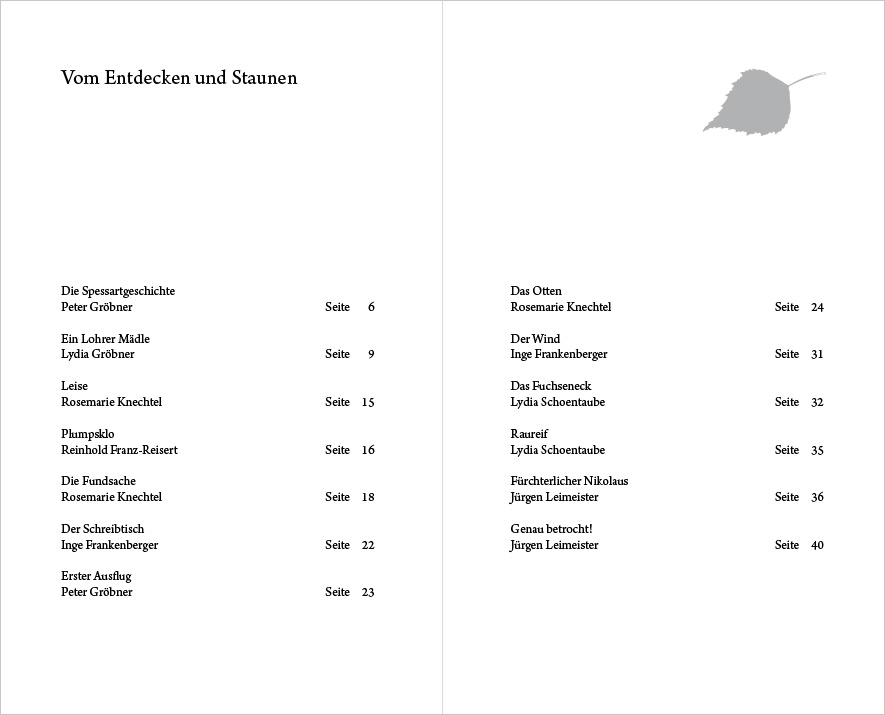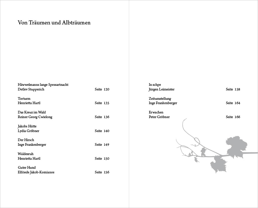 Die Anthologie versammelt Geschichten und Gedichte von fünfzehn schreibenden Menschen quer durch den Spessart, so anregend wie ein Spaziergang durch bunten Mischwald: zum Staunen, Schmunzeln und Träumen ebenso wie zum Entdecken, Innehalten und Wiedererkennen.